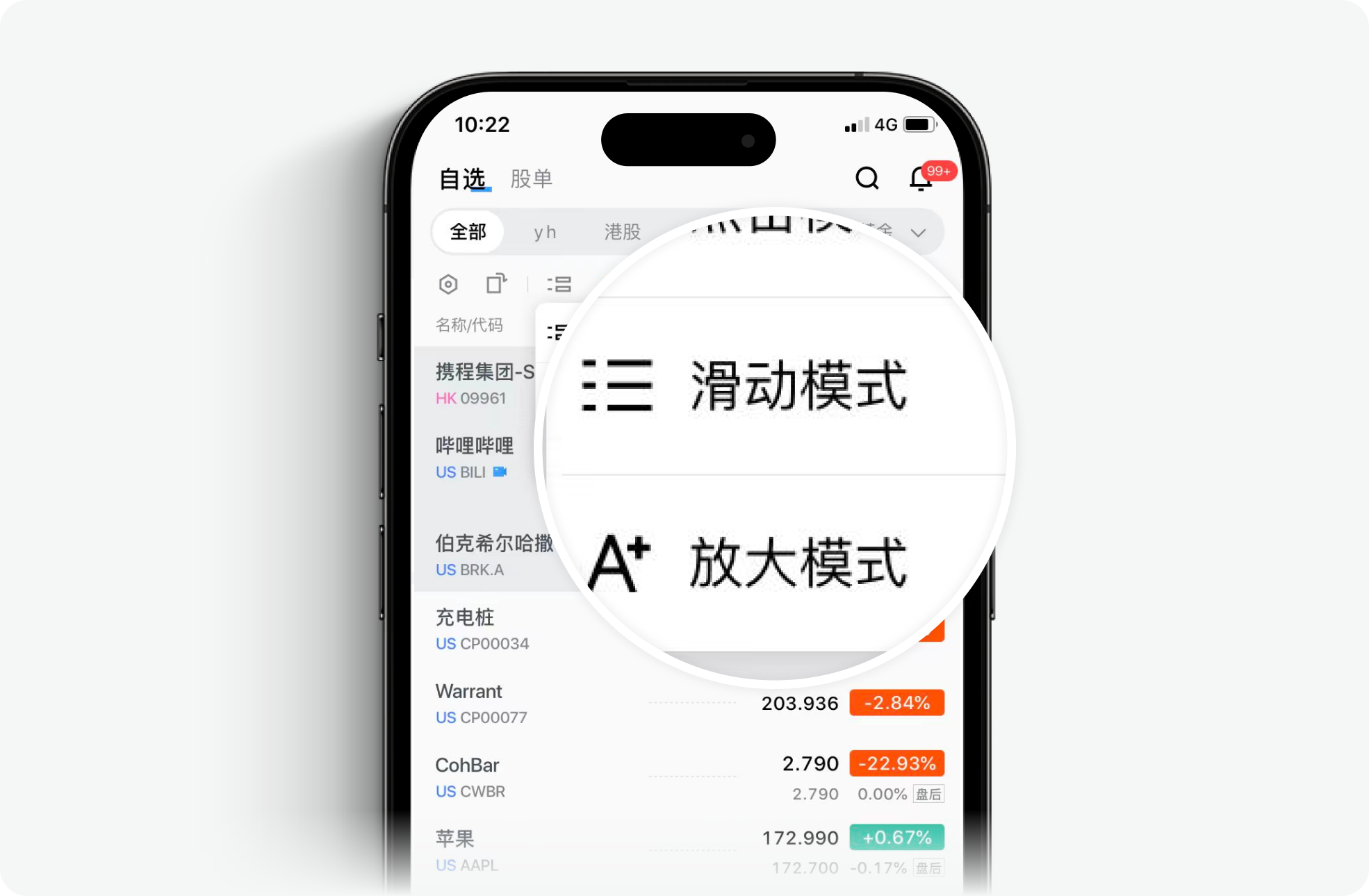 自选列表增加了放大模式,聚焦主要信息,字体更显眼!