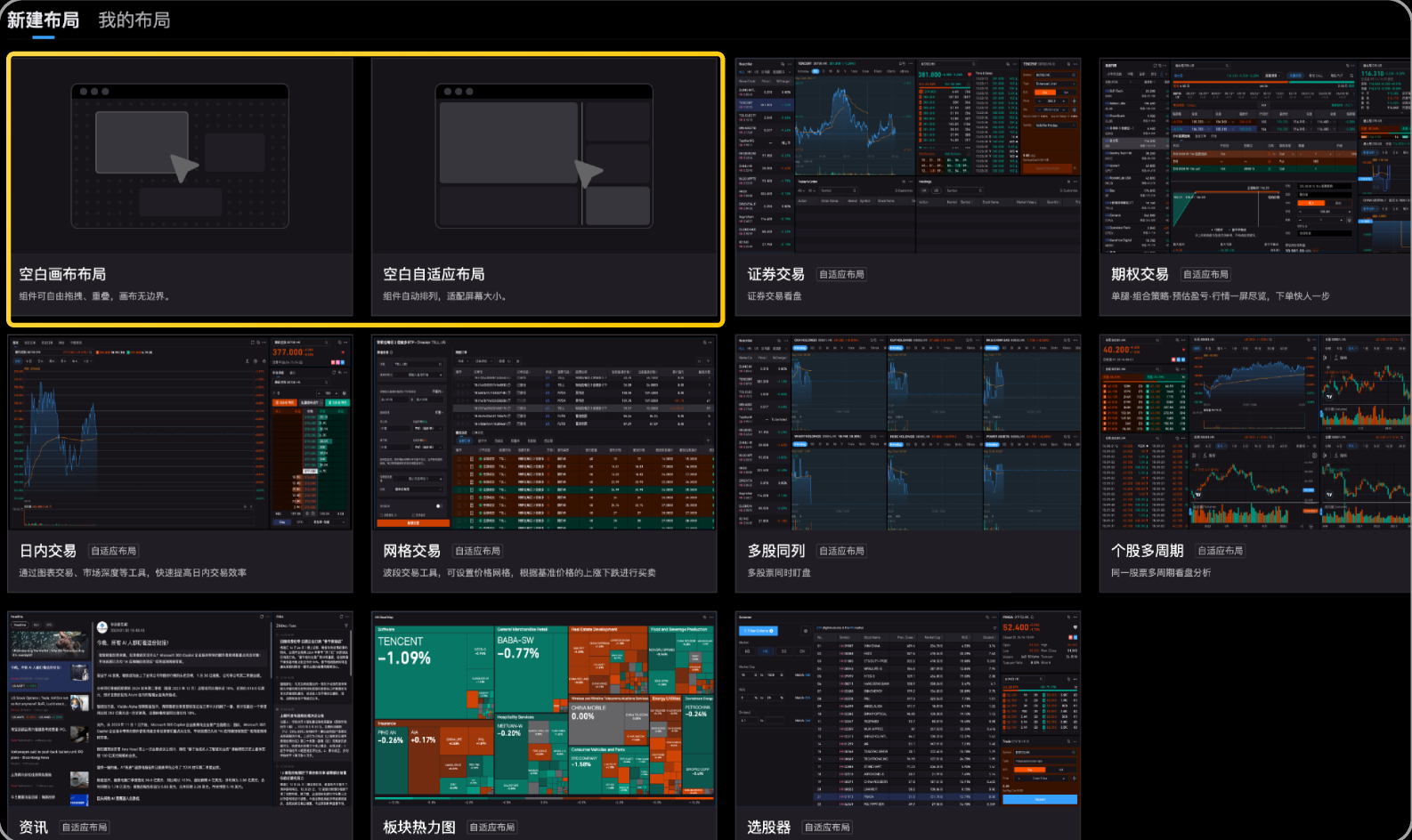 - 组件工具箱中新增要闻、个股资讯组件,同时可通过自适应布局中直接打开 “资讯” 布局页面