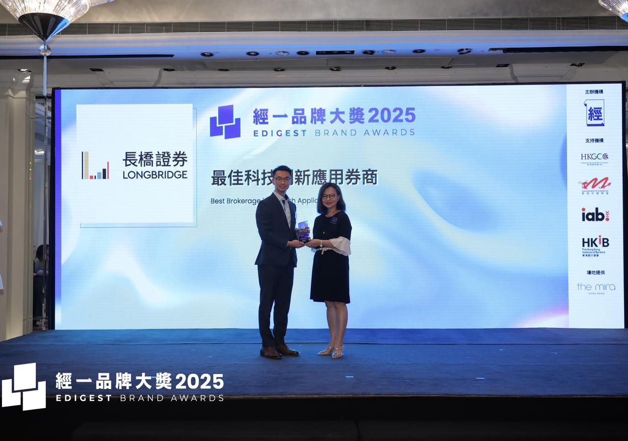 長橋證券憑藉卓越的金融科技創新與服務實力,昨日於香港知名財經媒體《經濟一週》主辦的「經一品牌大奬 2025」頒獎典禮中榮獲「最佳科技創新應用券商」殊榮。此獎項印證我們在科技賦能及用戶體驗革新領域的卓越表現,並標誌其科技實力獲業界與市場高度認可。