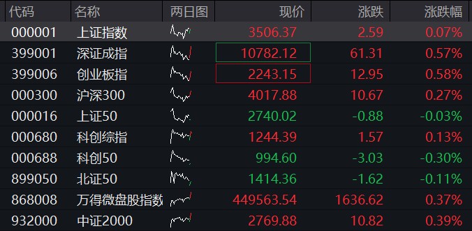 A-shares: As of the time of writing, the Shanghai Composite Index rose by 0.07%, the Shenzhen Component Index rose by 0.57%, and the ChiNext Index rose by 0.58%.
