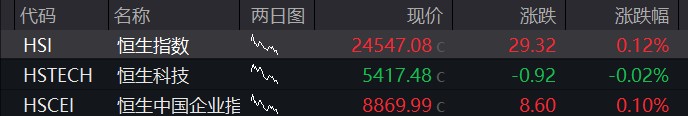 The Hang Seng Index opened up 0.12%, reporting 24,547.08 points; the Hang Seng Tech Index fell 0.02%. Baidu dropped 4.5%, Nio fell 3.5%; Sunny Optical Technology rose over 2%, Li Auto, Bilibili, and Meituan rose over 1%.