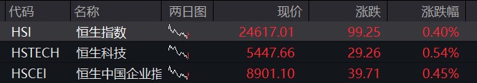 Hong Kong stocks: As of the time of writing, the Hang Seng Index rose by 0.40%, and the Hang Seng Tech Index rose by 0.54%.