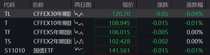 Bond market: Government bond futures showed divergence. As of the time of writing, the 30-year main contract fell by 0.04%, the 10-year main contract fell by 0.01%, the 5-year main contract remained flat, and the 2-year main contract remained flat.