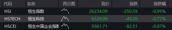 Hong Kong stocks: As of the time of writing, the Hang Seng Index fell by 0.95%, and the Hang Seng Tech Index fell by 0.77%.