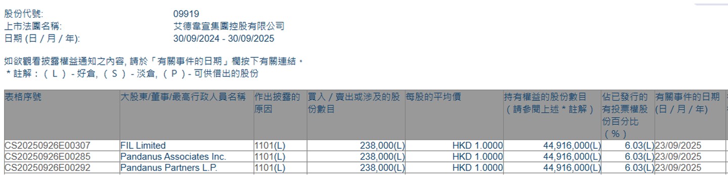 According to documents disclosed by the Hong Kong Stock Exchange, Fidelity International (FIL Limited) increased its holdings in ACTIVATION GP (09919) by 238,000 shares at an average price of HKD 1 per share on September 23, spending HKD 238,000. After the increase, Fidelity International's latest shareholding is 44.916 million shares, with a shareholding ratio rising to 6.03%. This marks the second time this year that the institution has increased its stake, demonstrating its confidence in the long-term value of this leading pan-fashion brand marketing company in the Greater China region.
