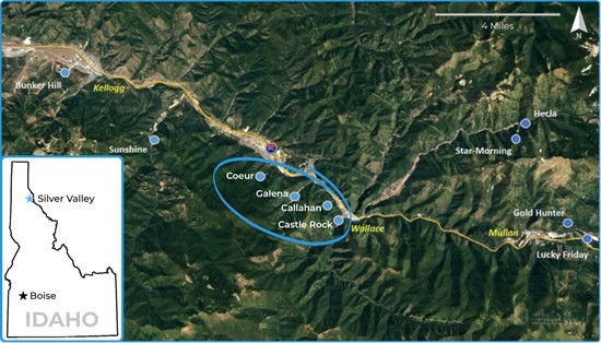 Figure 1: Location of Americas' Galena mining complex in Idaho's Silver Valley where antimony is currently produced