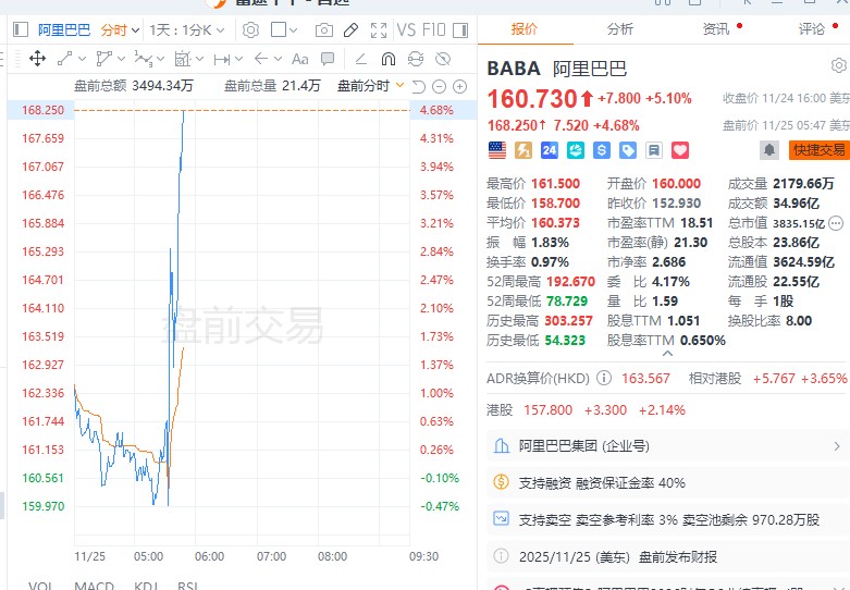 In terms of revenue, AIDC grew 10% year-on-year to 34.8 billion yuan. The improvement in profit margins indicates that the group is enhancing its financial situation while maintaining growth through optimized logistics and improved input efficiency. The unit economics of the AliExpress Choice business continue to improve, making a key contribution to the group's profitabilityAfter the earnings report was released, Alibaba rose more than 4% in pre-market trading.