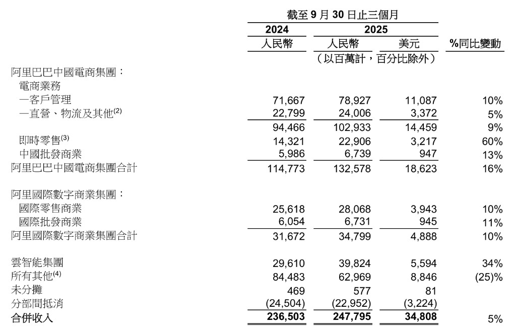 On the 25th, Alibaba announced its financial report for the second fiscal quarter ending September 30: