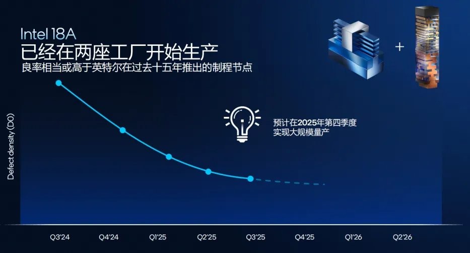 According to TechPowerUp, Intel Vice President John Pitzer stated that over the past seven to eight months, the yield curve for the company's 18A chips has steadily risen. Intel's technical experts also indicated at the previous Panther Lake conference that as of October this year, Intel's 18A process has officially started production. The current yield level of 18A is not lower than that of any previous core node, and yield improvement has entered a more predictable trajectory. It is expected to reach the yield threshold required for mass production by the fourth quarter of 2025, fully entering the high-capacity production phase.