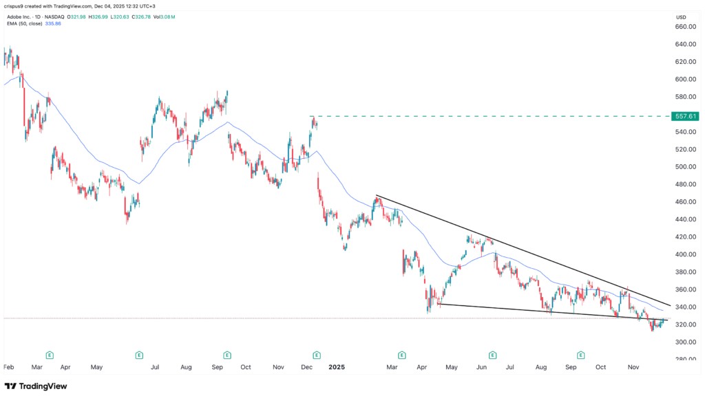 Adobe stock price has been in a freefall in the past few years as it continued to underperform the broader stock market. ADBE was trading at $325 today, Dec. 4, down by over 50% from its pandemic highs. Its market cap has dropped from $341 billion at its peak to $138 billion today.