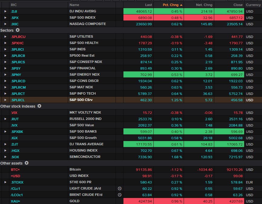 Main US indexes rise slightly: Nasdaq leads, up ~0.1%