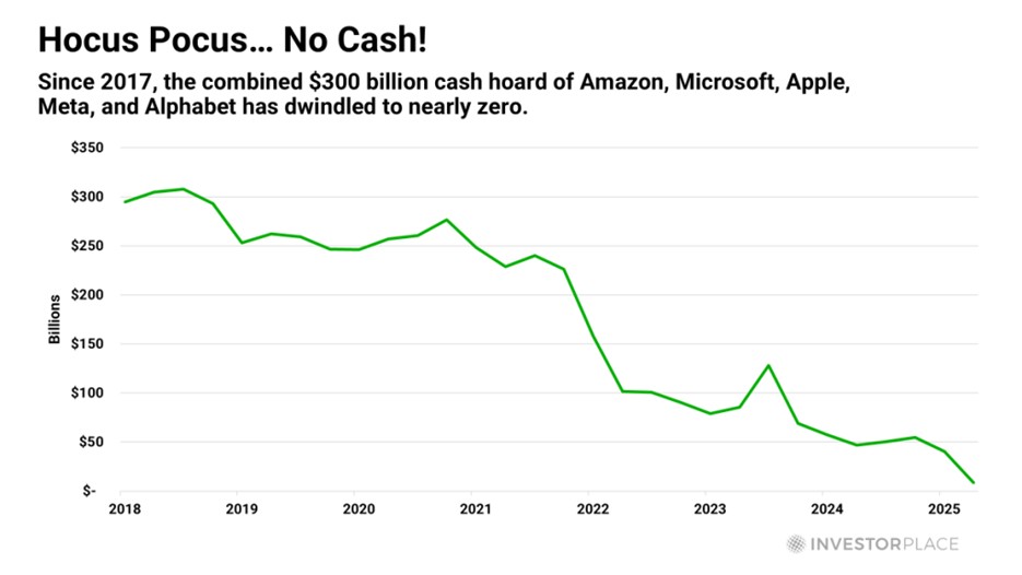 Their once-mighty $300 billion cash fortress has dwindled dramatically. Years of outspending free cash flow have turned these giants into heavy borrowers.