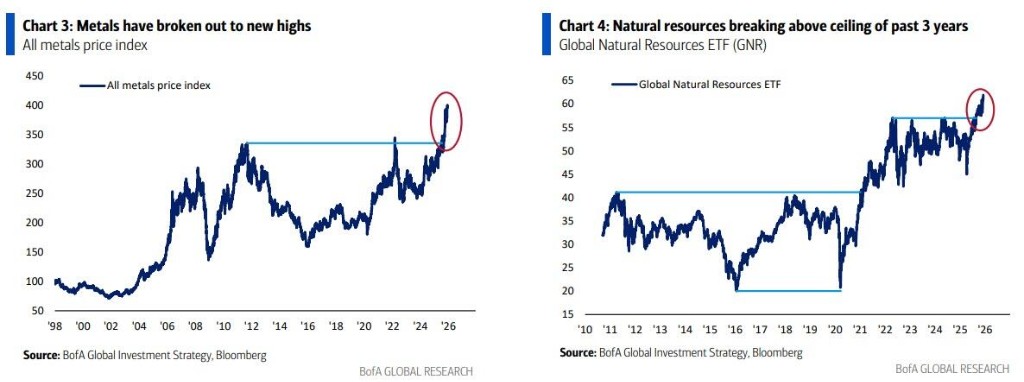 Currently, natural resources, metals, and Latin American stock markets are all experiencing technical breakthroughs, with Latin American stock markets rising 56% year-to-date.
