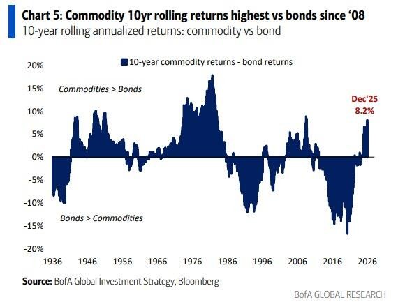 Bank of America Chief Investment Strategist Michael Hartnett recently predicted that going long on commodities will become the best trading theme in 2026, with all commodity price charts ultimately showing an upward trend similar to that of gold. This judgment is based on the global economy shifting from the "monetary easing + fiscal tightening" model after the financial crisis to the "fiscal easing + de-globalization" new paradigm post-pandemic.