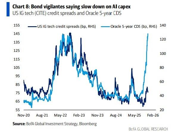 Hartnett believes that the peak of liquidity corresponds to the trough of credit spreads, and bond vigilantes are becoming the new regulators of AI capital expenditures, demanding a slowdown in growth, as the capital expenditures of super-large cloud service providers are expected to rise from 50% of cash in 2024 ($240 billion) to 80% in 2026 ($540 billion)