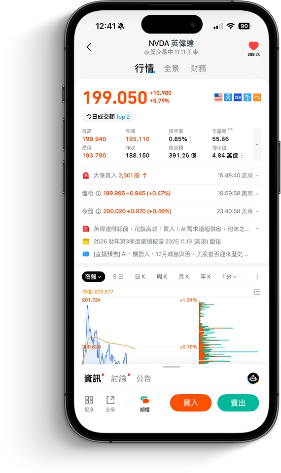 盤前、盤中、盤後行情連續圖表,一覽全天走勢