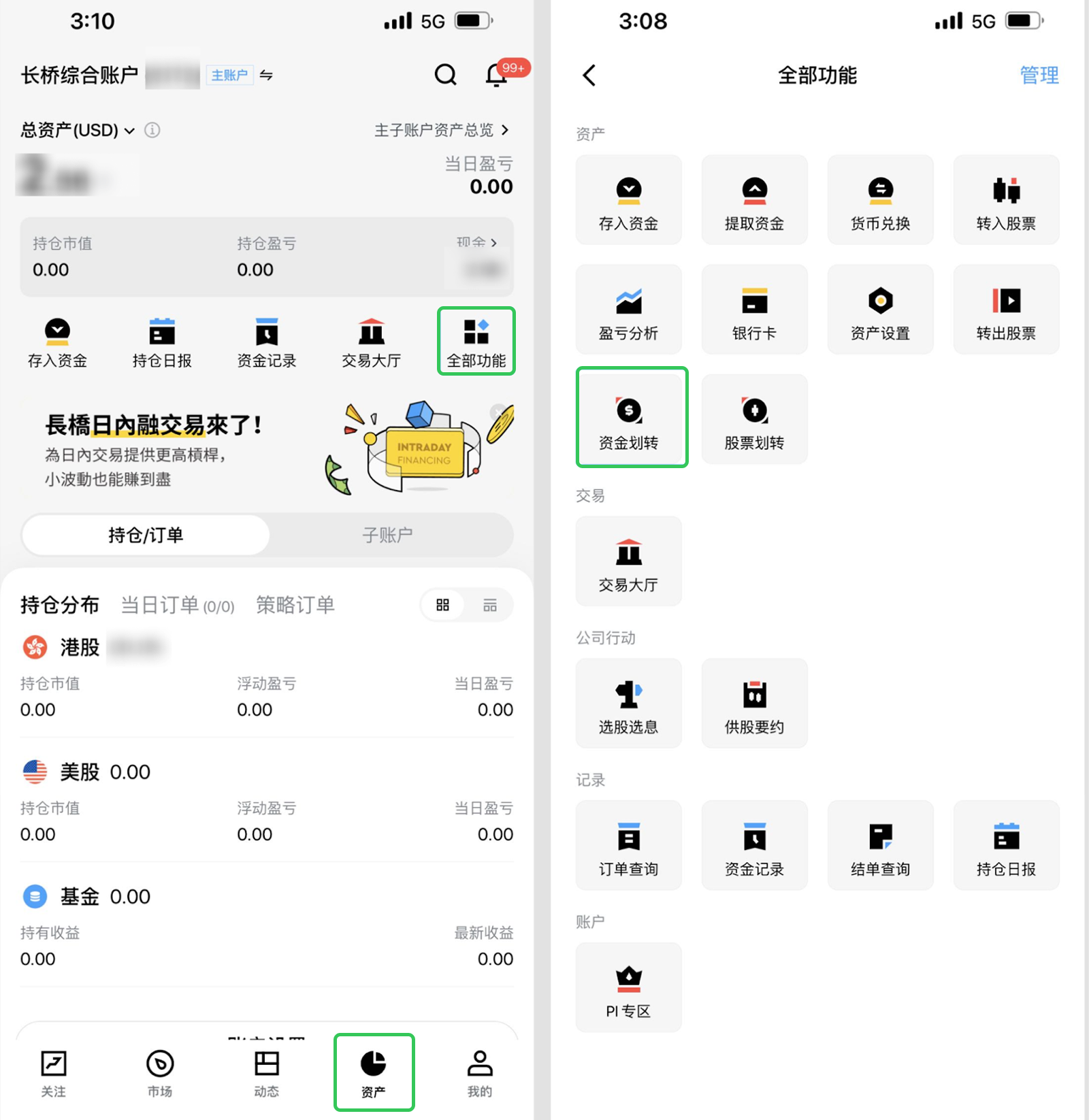 點擊資產 > 全部功能 > 資金劃轉。選擇跨券商資金劃轉。