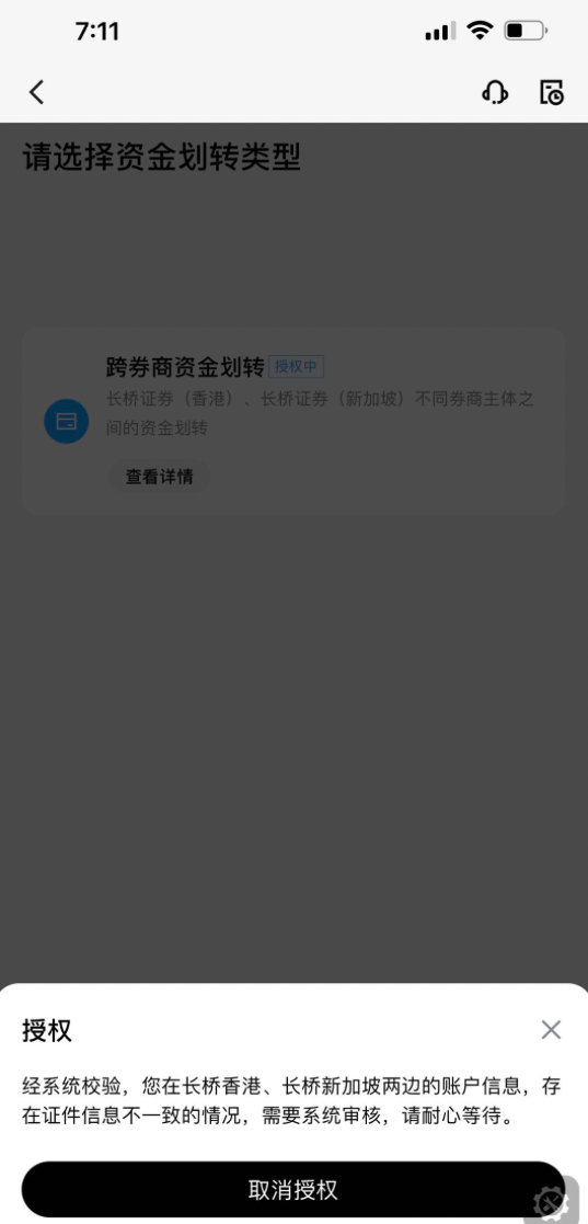 若您在長橋證券(香港)發起過授權,且授權成功,則長橋證券(新加坡)無需再授權,可直接發起劃轉申請。