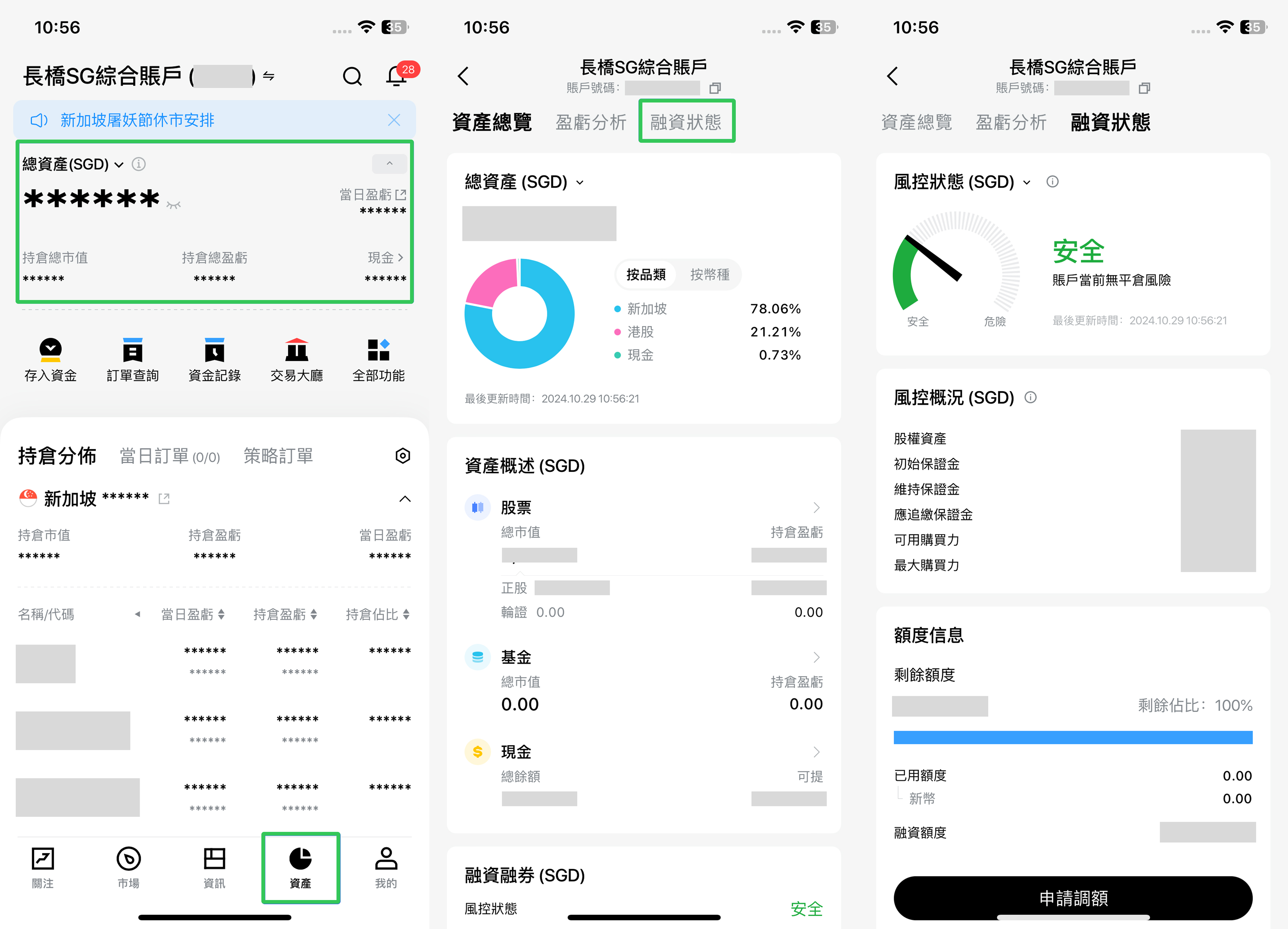 當您使用融資交易時,將影響您的賬戶風險。為了便於您了解賬戶當前是否存在被平倉的風險,您可在長橋 App > 資產 > 融資狀態,查看您賬戶的風控狀態。