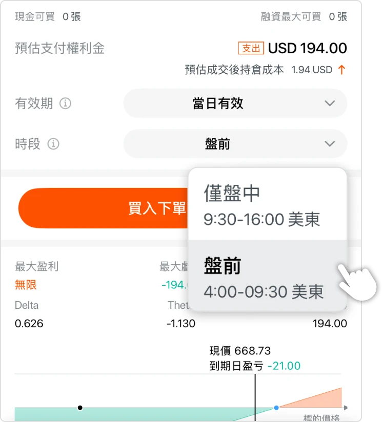 您的交易資格已開通,直接登入賬戶便可在盤前時段交易美股期權。