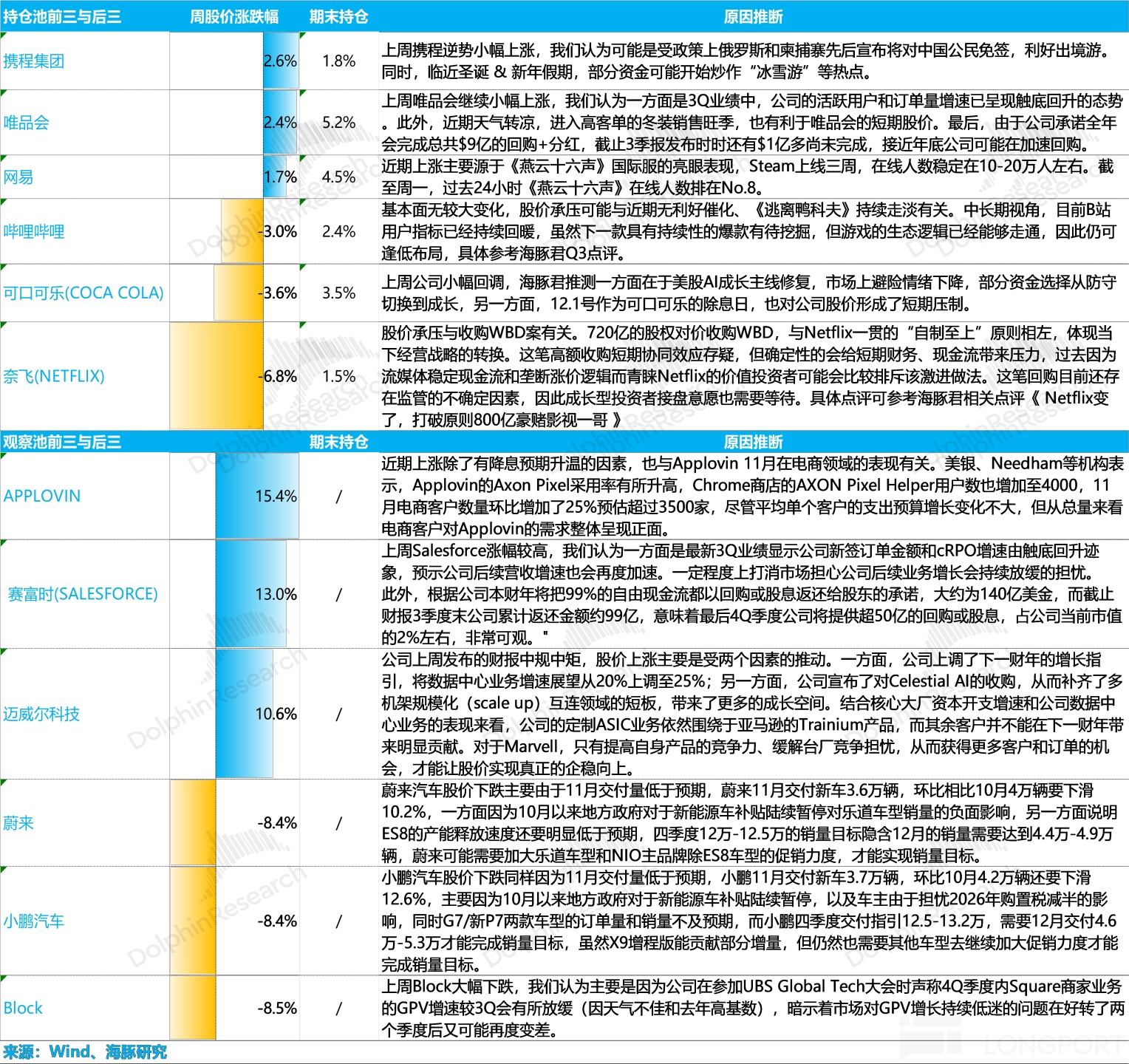 For recent weekly portfolio reports by Dolphin Research, please refer to the articles below. See the link for details.