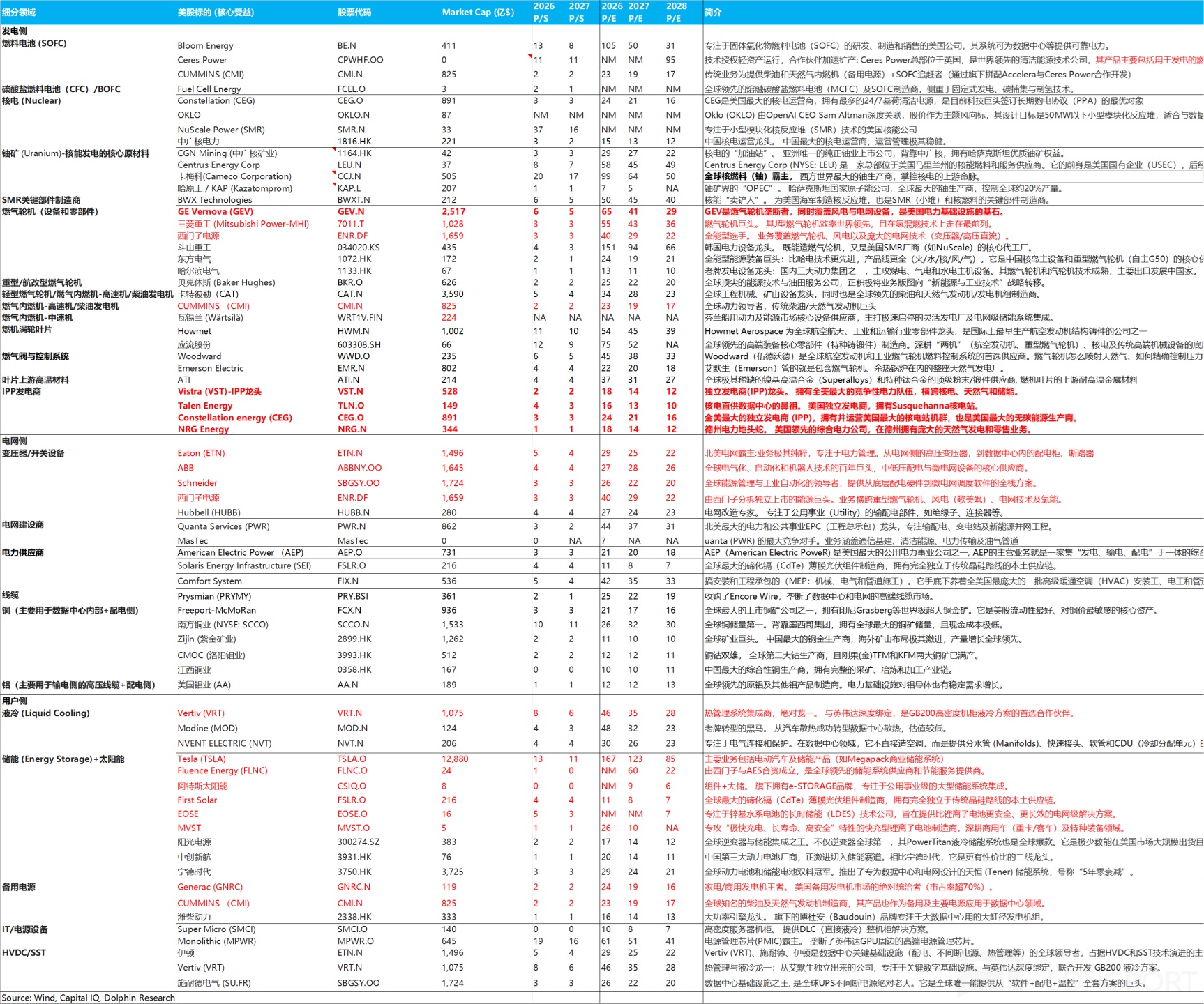Along this value chain, Dolphin Research has compiled the key beneficiaries; see AI 电力与能源股单 for names and investment logic.