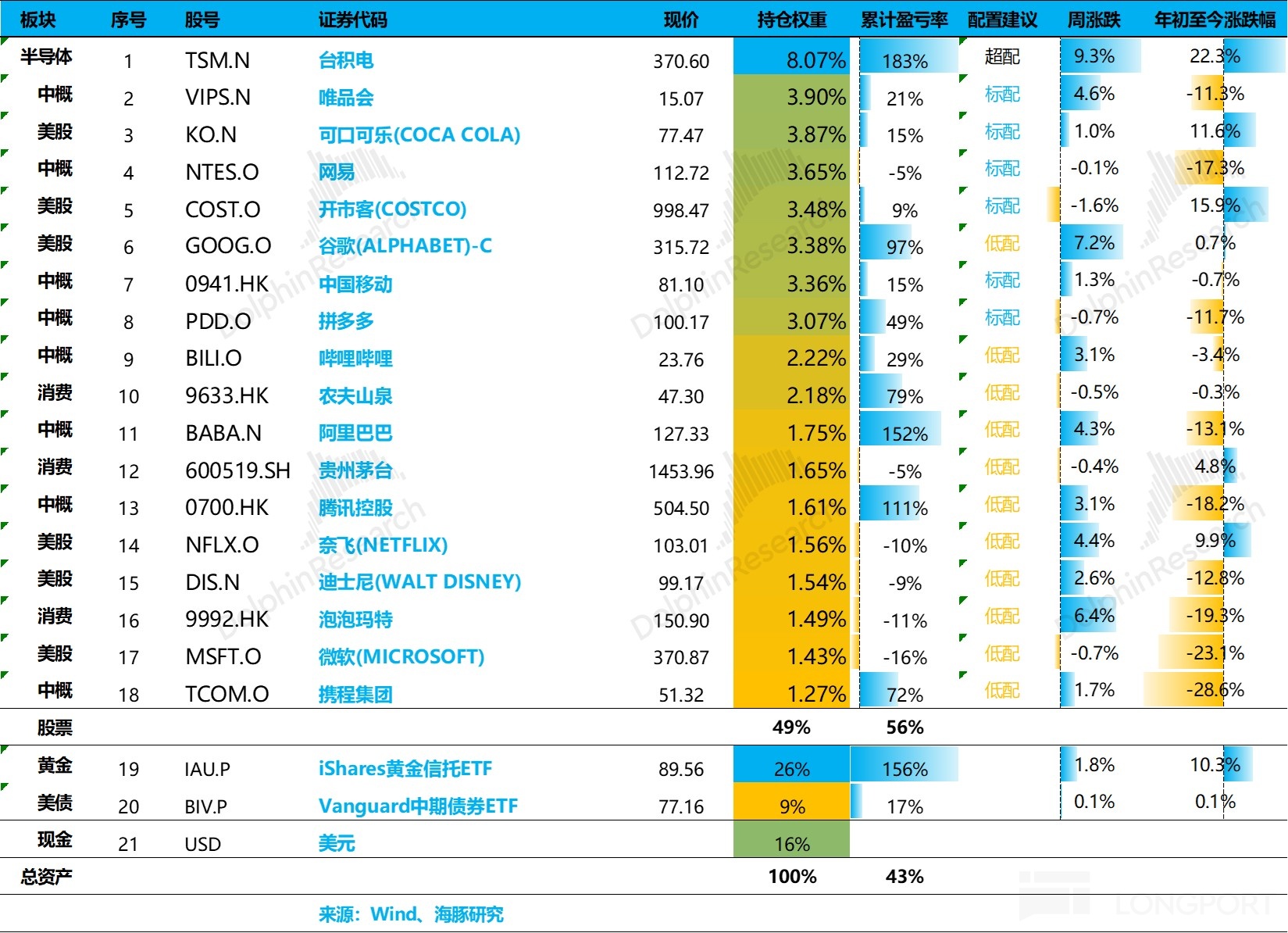 For recent weekly portfolio reports by Dolphin Research, please refer to: