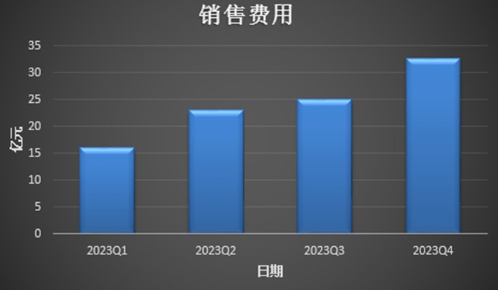 到 2023 年第四季度,理想覆盖的城市已经达到 140 个,环比增长 7 个,直售零售中心达到 467 家,环比增长 106 家。渠道网络扩张同样导致销售费用显著上升,第四季度的销售、一般和管理费用达到 32.7 亿元,同比增长 100.6%,环比增长 28.5%。