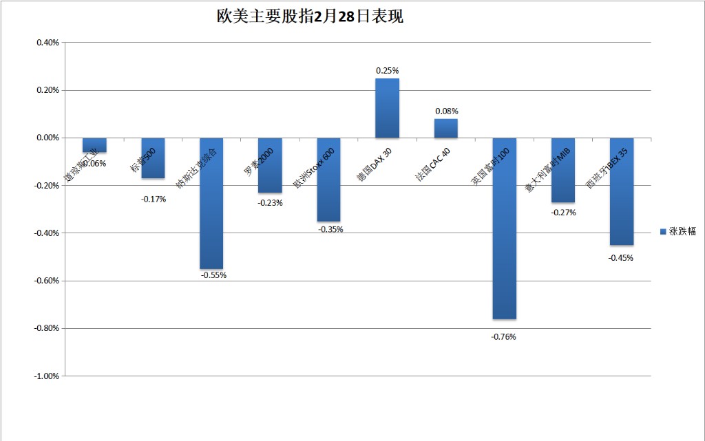 道指收跌 23.39 点,跌幅 0.06%,报 38949.02 点,纳指收跌 0.55%,报 15947.74 点,均刷新 2 月 21 日上周三以来收盘低位。标普收跌 0.17%,报 5069.76 点。