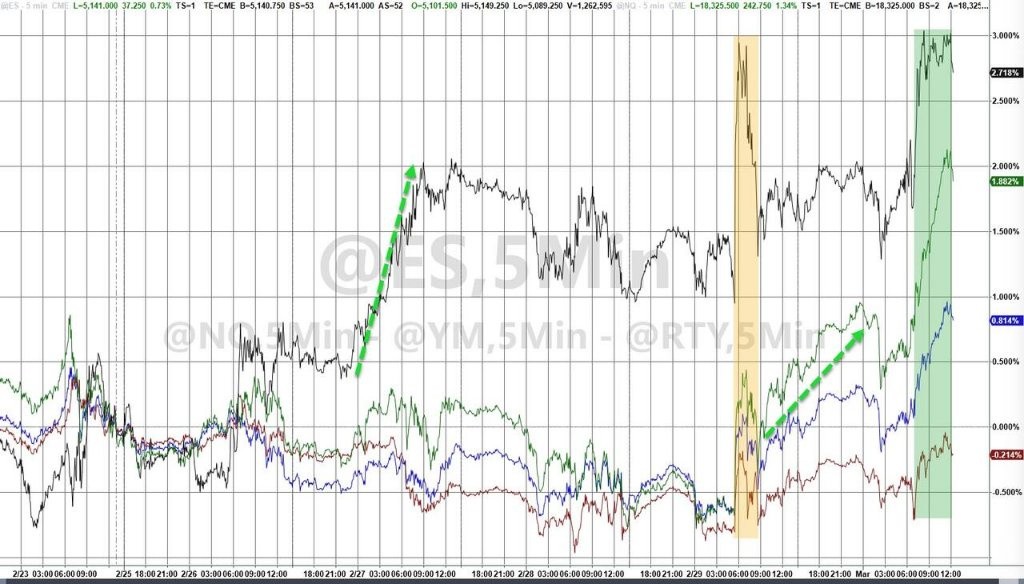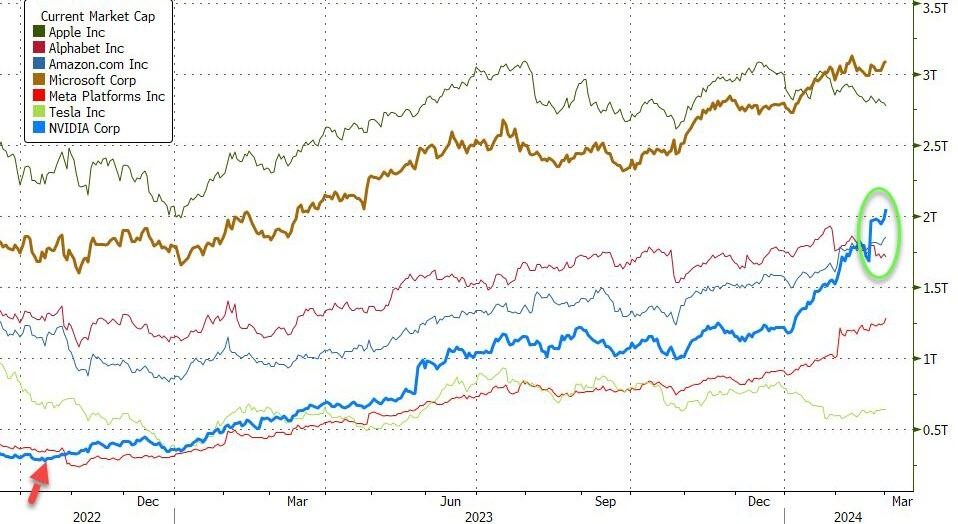 美股指总体继续走高,携手欧股和连创历史新高的日股 3 月开门红,芯片股连日力撑大盘,英伟达和 AMD 均继续创收盘历史新高,英伟达成为首只收盘市值突破 2 万亿美元大关的芯片股,台积电美股也创收盘最高纪录。因 AI 服务器需求强劲而四季度业绩优于预期的戴尔高涨超 20%。而因内控存在重大缺陷而暴雷后的纽约社区银行(NYCB)跳空低开近 30%,连累地区银行股齐跌。中概股指在 2 月大涨后喜迎 3 月走高开局,但造车新势力在公布2 月交付量后表现不一,小鹏汽车连日大涨,理想汽车回落。