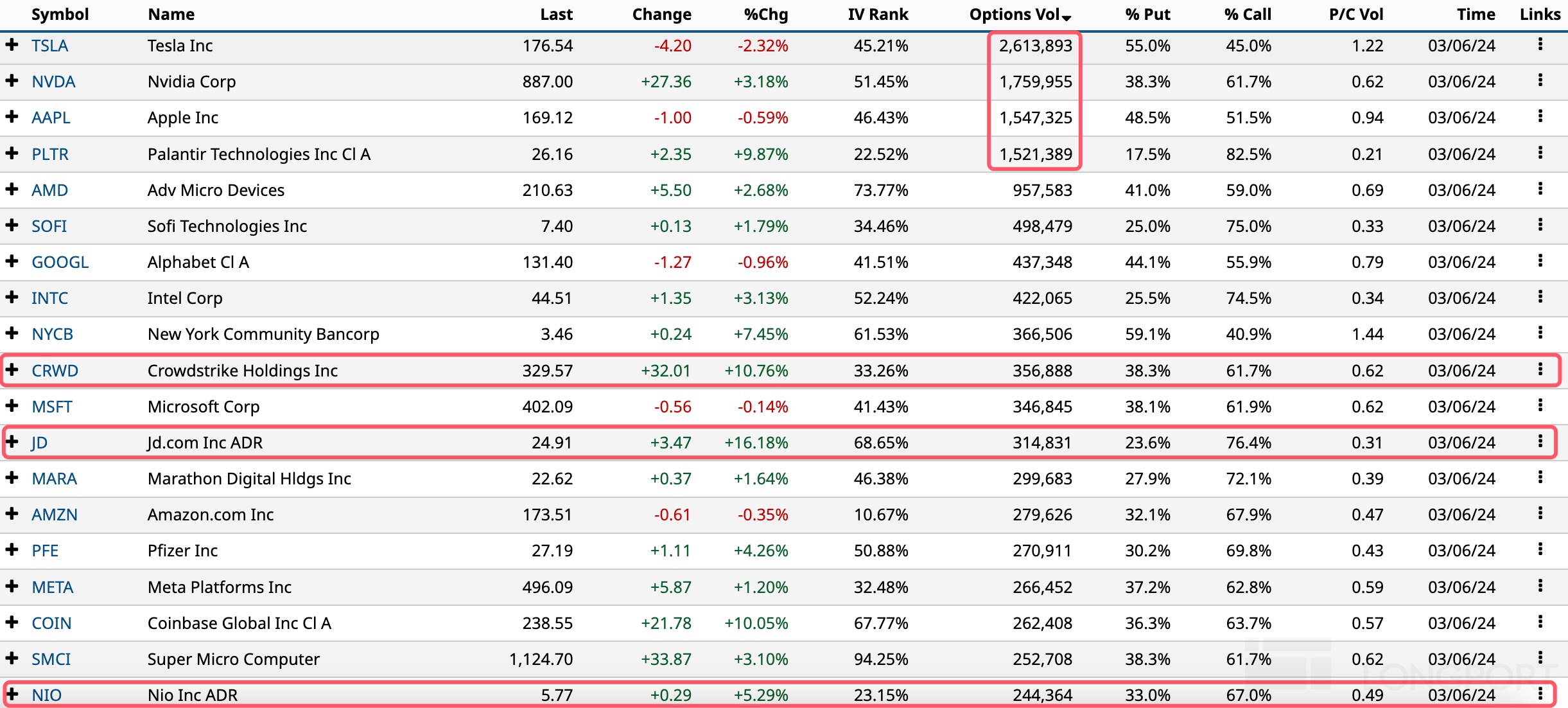 美股期权 | 京东、CRWD、Palantir 成交暴涨!特斯拉、苹果 put 火爆