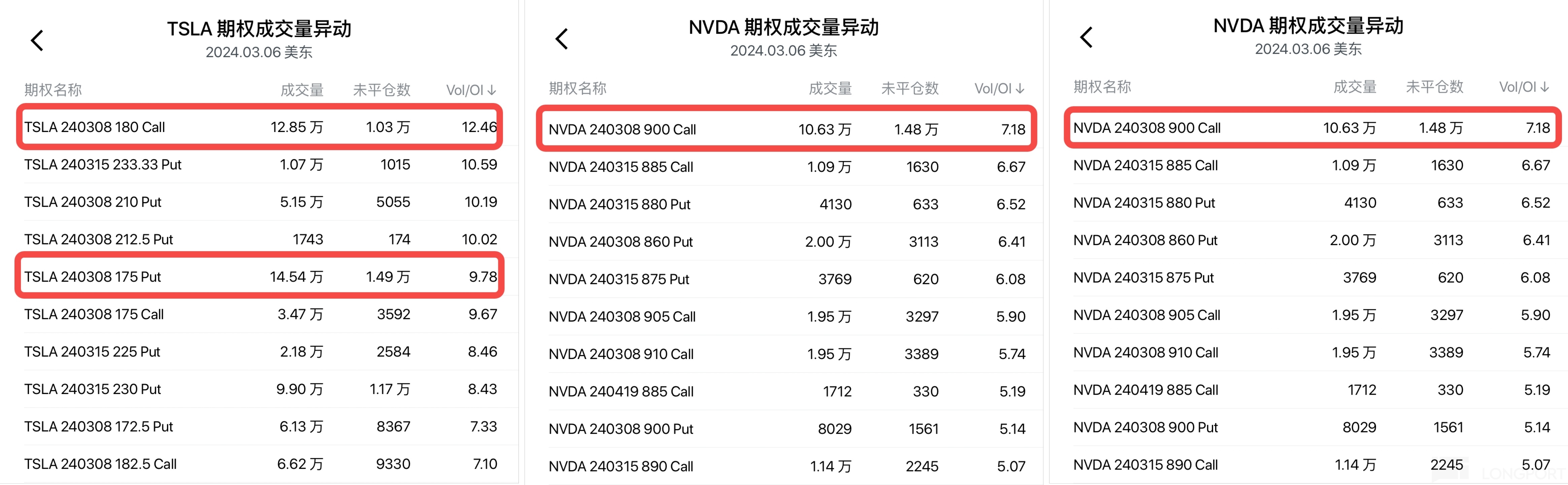 英伟达涨超 3%,期权成交涨至 176 万张,看涨期权占比 62%。执行价 900 美元的看涨期权成交超 10 万张。