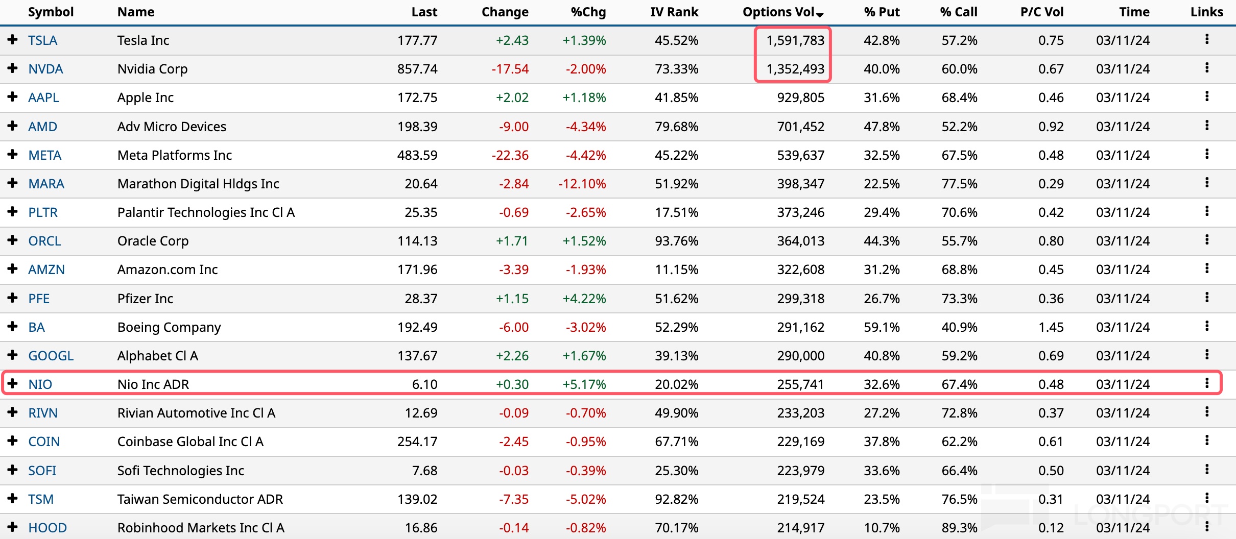 蔚来涨超 5%,期权成交涨至 25 万张,看涨期权占比 67%。