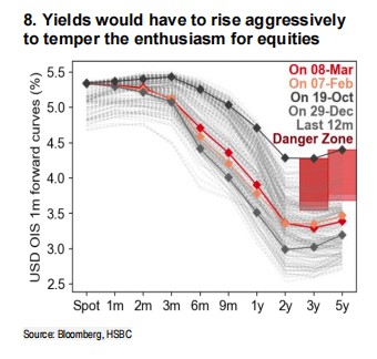 汇丰认为,“1 月特例论” 因素不足以解释通胀上行,服务业通胀已经持续走高相当一段时间,本周 CPI 数据可能会再次扰乱市场,尤其是过去几天主权长债表现超过股票的格局。但这并不会影响美股长期表现,只有当美债收益率大幅上涨时,才有可能抑制市场对股票的热情。