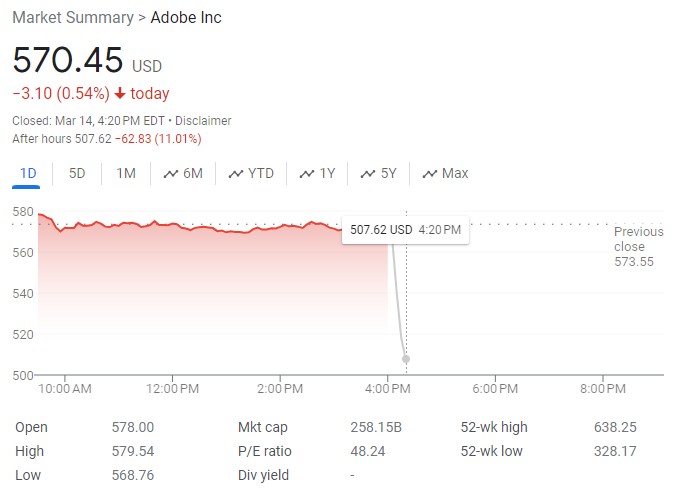 Adobe 业绩指引逊于预期,股价盘后跌超 10%