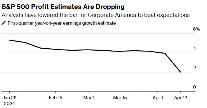 Matejka 领导的摩根大通研究团队表示,第一季度的利润预期已经被下调,这降低了美国企业超越预期的门槛。策略师们表示,剔除科技巨头后,标普 500 指数成分股企业盈利预计将全面下滑。