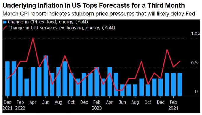 衡量美国基础通胀的核心通胀指标连续三个月超过预期,预示着新一轮的消费者价格压力以及通胀粘性似乎开始蔓延至美国经济各个角落。而零售数据显示出只要强劲的劳动力市场支撑家庭消费需求,通胀就有可能根深蒂固,并进一步推迟美联储的降息行动。