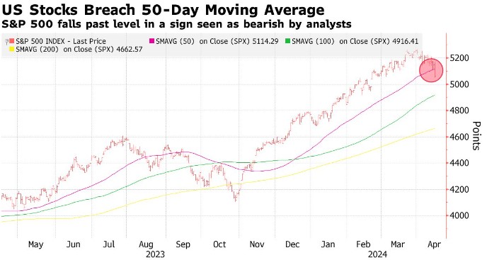 由于对中东紧张局势和利率走势的担忧,该美国基准股指在过去两个交易日下跌了 2.6%。他在一份报告中写道:“标普 500 指数的多头平仓主要是获利了结交易,但剩余的多头现在平均亏损 0.8%。如果市场转为下跌,走势可能会更快、更大,因为大量多头头寸已经处于亏损状态。”