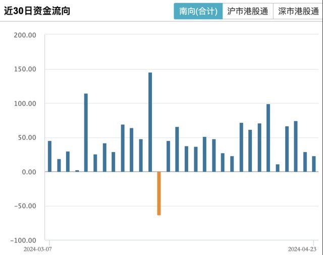 截至周三,内地投资者已连续 17 个交易日增持港股,创历史最长连增纪录,今日南向资金延续净流入态势,金额达到 19.95 亿港元,4 月以来,南向累计流入 391.58 亿港元。今年迄今为止,除 11 个交易日外,内地投资者在所有交易日中都增持了港股。