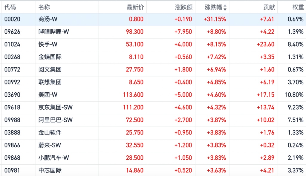 美团、腾讯、快手、京东三天涨幅均超 10%!港股互联网巨头携手大涨