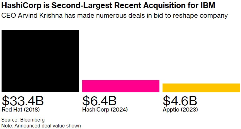 另外,IBM 宣布已同意以 64 亿美元企业价值收购 HashiCorp,后者主要销售帮助企业管理云计算运营的软件。这是 IBM 自 2019 年以 318 亿美元收购软件公司 RedHat 以来最大的一笔收购。