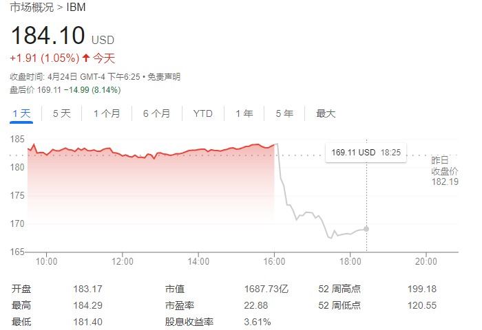 IBM 股价在周三盘后交易中大跌近 9%,原因是该公司第一季度的营收未能达到分析师的预期。稍早前,IBM 宣布计划以 64 亿美元全现金交易收购云软件公司 HashiCorp,希望借此加强其在云计算领域的竞争力。