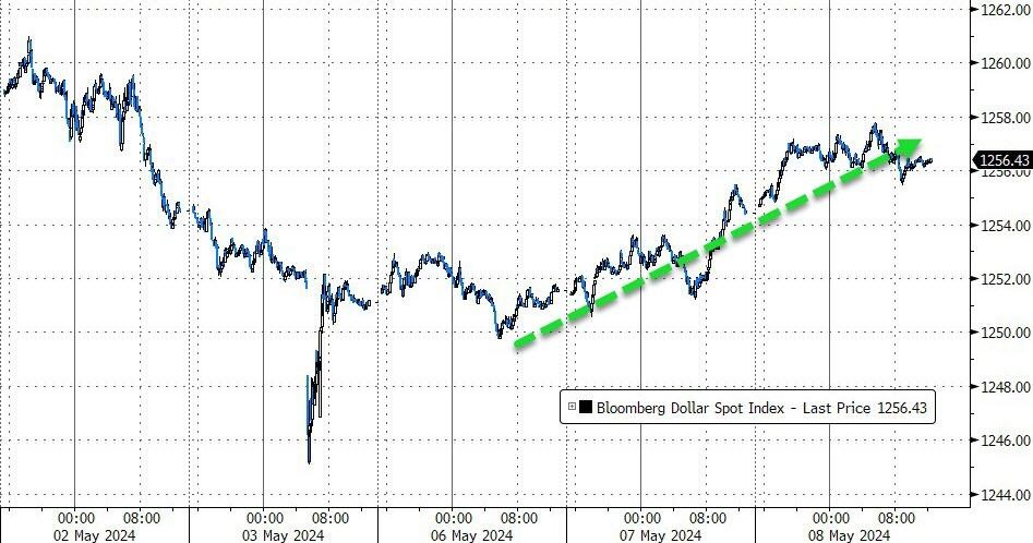 到周三美股收盘时,美元指数处于 105.50 上方,日内涨近 0.1%;追踪美元兑其他十种货币汇率的彭博美元现货指数日内涨近 0.2%,继续脱离上周五刷新的 4 月 11 日以来同时段低位,和美元指数均在连跌三日后连续三日反弹。