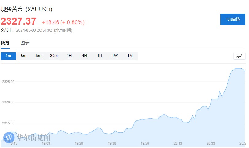 美国 5 月 4 日当周首申失业金人数超预期,创去年 8 月来最高,黄金站上 2320 美元关口