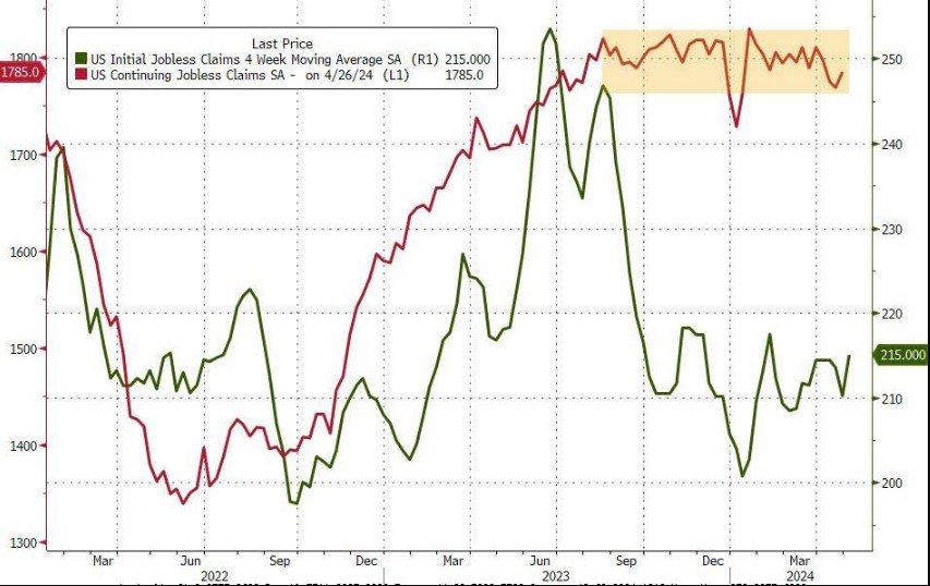 持续申请失业救济人数也居高不下,美国 4 月 27 日当周续请失业救济人数升至 179 万,创一个月来最大增长。