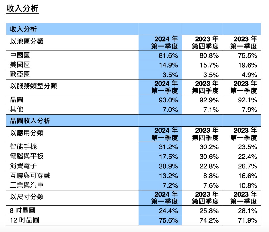 从收入来源看,本季各地区业务贡献占比变化不大,中国区收入贡献较上季提升 0.8%,占比达到了 81.6%,美国区业务营收则有所收缩,欧亚区持平。晶圆销售收入仍为中芯国际主要营收来源,占总营收的 93%,较上季的 92.9% 和去年同期的 92.1% 略微增加。