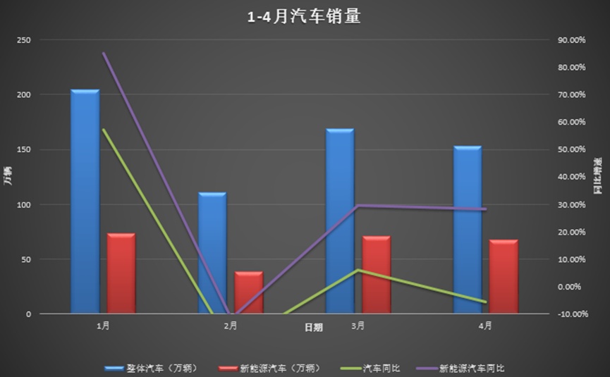 今年 4 月,乘用车整体的销量同环比增速首度转负。整体乘用车产量为 198.8 万辆,同比增长 14.9%,但环比降低 9.6%;乘用车零售销量为 153.2 万辆,同比减少 5.7%,环比降低 9.4%。