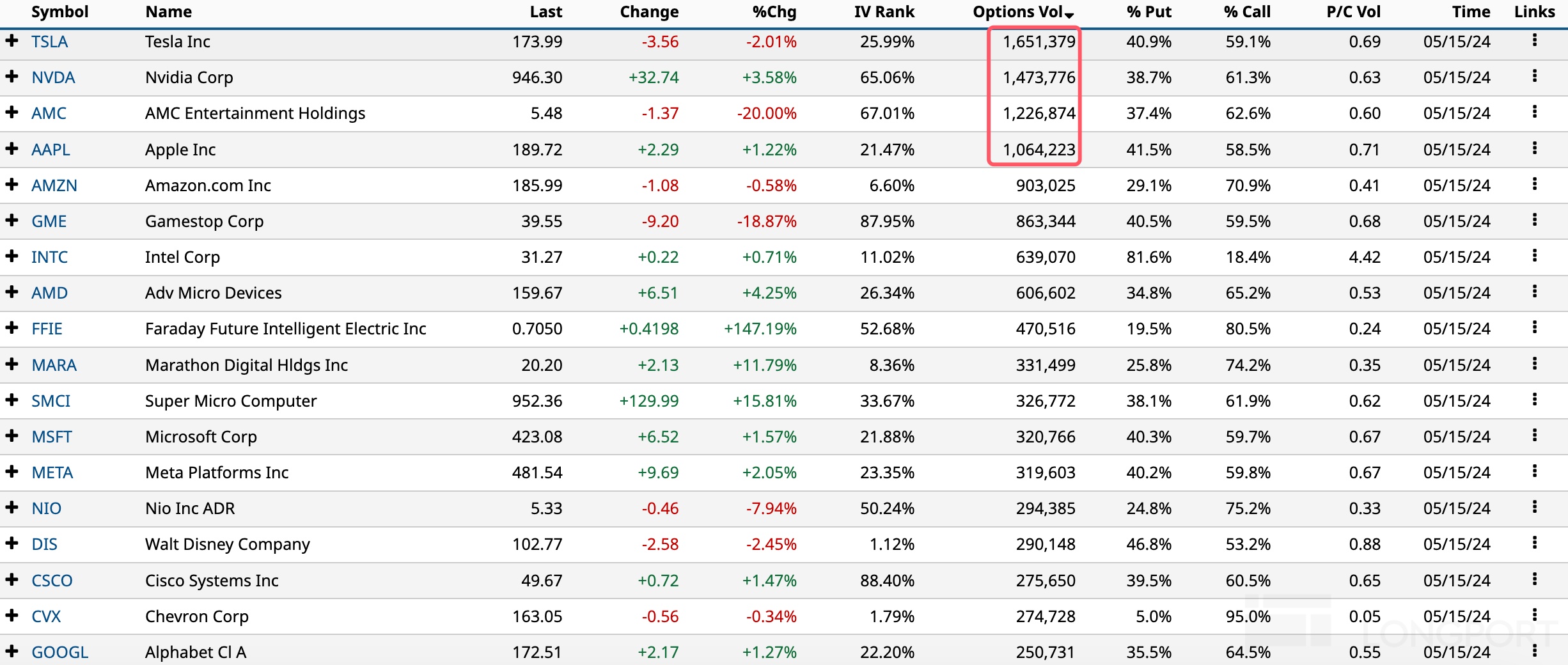 美股期权 | 法拉第未来、英伟达、苹果、亚马逊、AMD 成交暴涨!