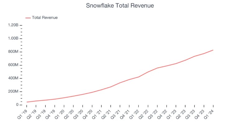 智通财经获悉,Snowflake(SNOW.US) 公布了第一季度财务业绩。Snowflake 二季度销售指引超出预期,表明新的人工智能产品有助于加速增长。Snowflake 一季度产品收入同比增长 34%,至 7.896 亿美元,高于分析师预期的 7.49 亿美元。一季度总营收为 8.29 亿美元,同比增长 32.9%,分析师预期为 7.86 亿美元。非 GAAP 每股盈利为 14 美分,分析师预期为 19 美分。