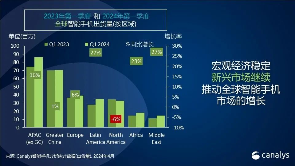 Canalys:一季度全球智能手机市场出货量达到 2.962 亿部 同比增长 10%